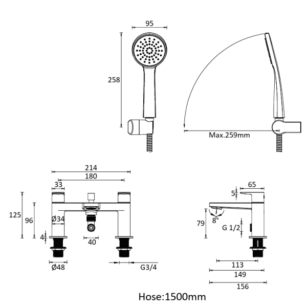Drift vannas/dušas maisītājs (attālums starp centriem 180 mm)