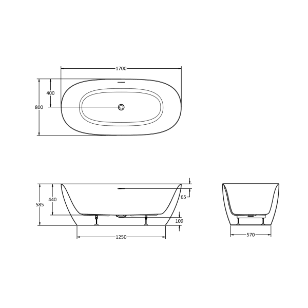 Auriga brīvi stāvoša vanna 1700 x 800