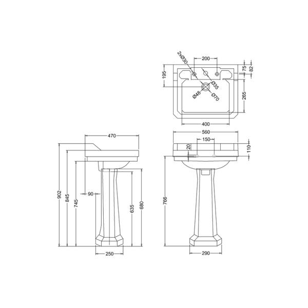 Pēc pasūtījuma izgatavota "Alaska Blue" Edvarda laika 56 cm izlietne ar standarta pjedestālu