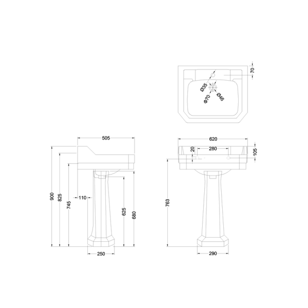 Pēc pasūtījuma izgatavota "Cosmic Green" Edvarda laika 61 cm izlietne ar standarta pjedestālu